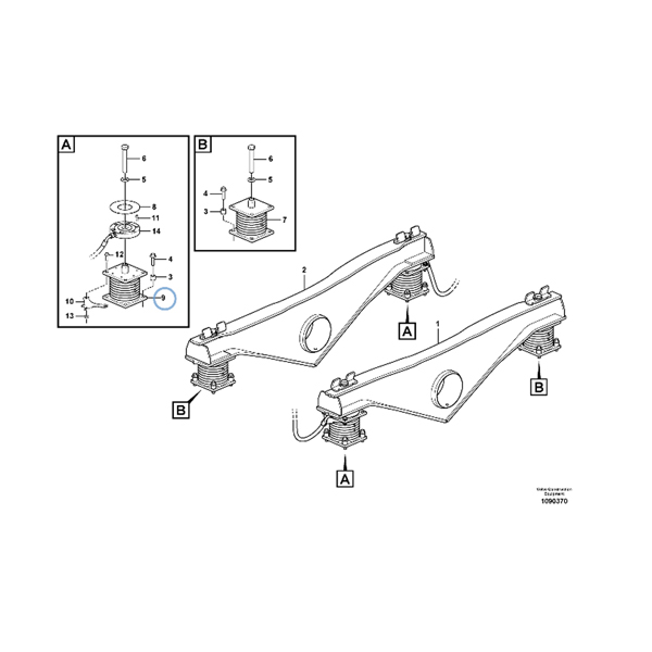 Rubber cushion with metal insert used to stop the transmission axle of the dumper truck.