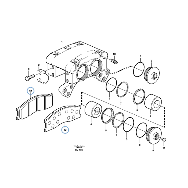 Brake Lining Kit-VOE17410219 is a genuine spare part provided by Volvo Construction Equipment. This kit includes a mounted disc brake lining specifically designed for use in construction machinery. As a significant component in the braking system, it ensures optimal performance and safety. The brake lining kit is applicable to a range of Volvo Construction Equipment models, including but not limited to 4300B, 4400, 4500, 4600, 5350B, and L90B. For a complete list of compatible models, please contact our support team.