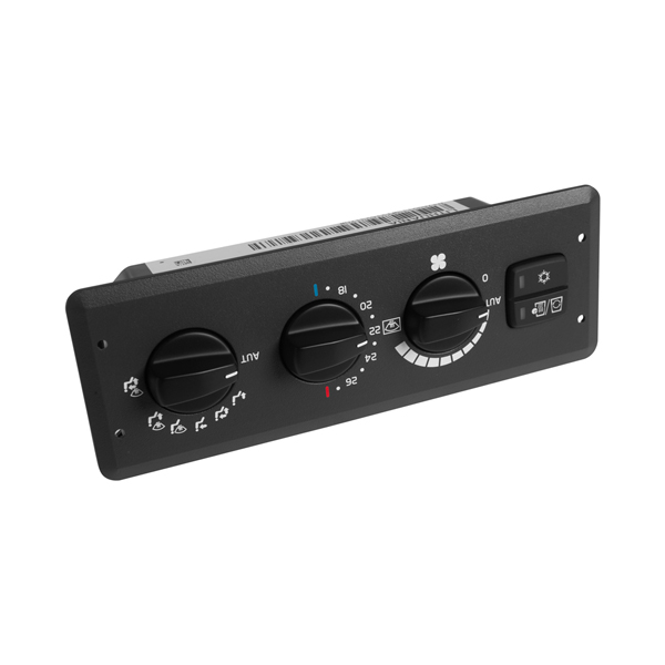 Control panel for the cabin air conditioning system containing electrical switches suitable for use with the dumper truck's 24v electrical system.