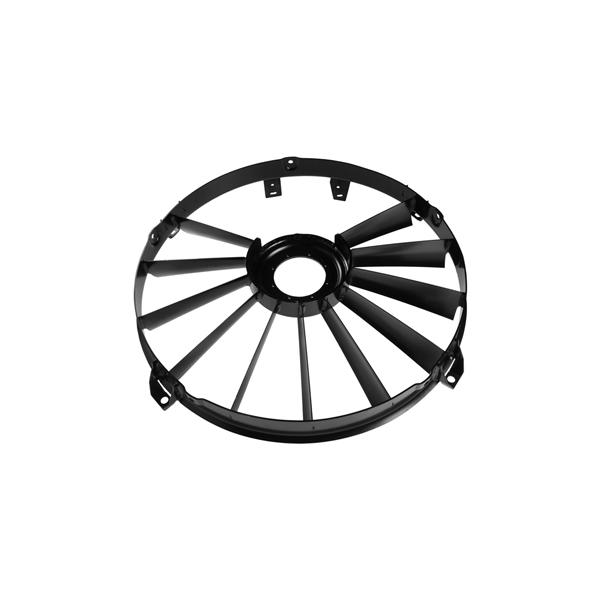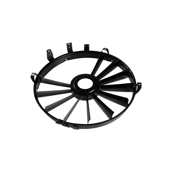 Deflector and protection cover with its own size and shape for the cooling fan of the compression ignition engine of dumper trucks.
