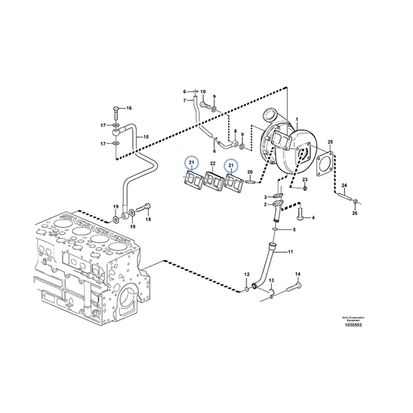 Sealing gasket made of asbestos-free hydraulic cardboard used in turbochargers of compression ignition engines used in trucks.