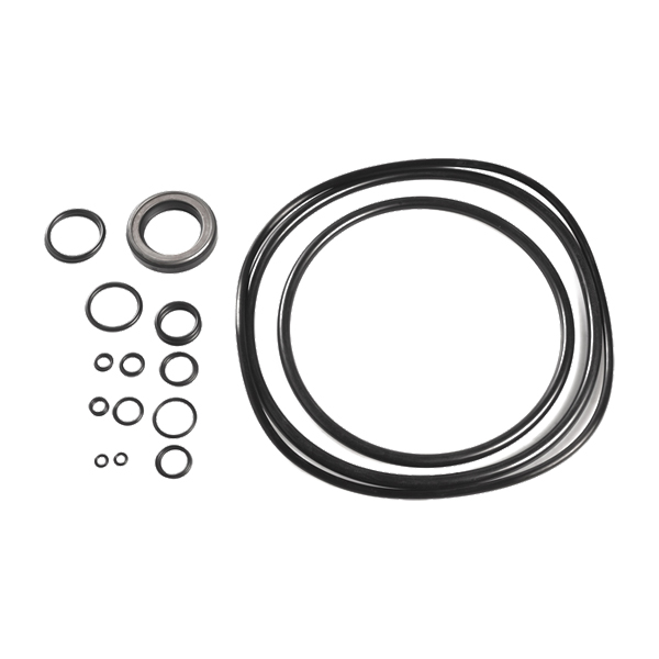 Non-hardened, non-cellular vulcanized rubber seal set consisting of o-rings and sealing rings used in axial piston hydraulic motors of the inclined disc type.