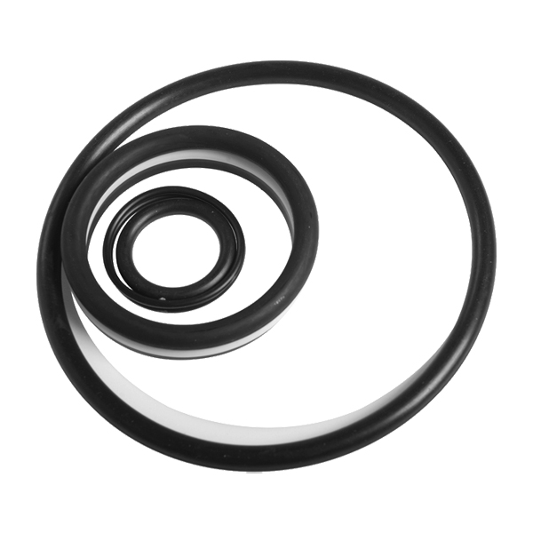 Set of sealing rings of assorted materials used during repair of construction machine brake system.