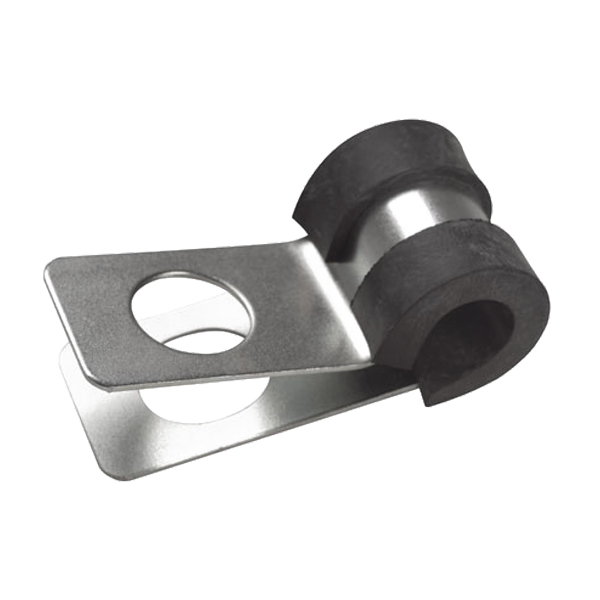Steel clamp with rubber protection.