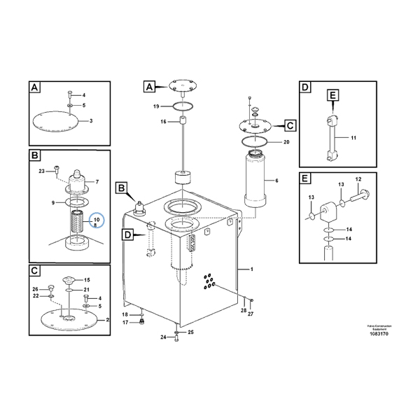 This hydraulic tank filter is part of a comprehensive filter kit that Volvo offers, including primary filters and safety filters. The FILTER-VOE14596399 is a key component in maintaining the health of your hydraulic system, preventing potential damage and costly repairs.
