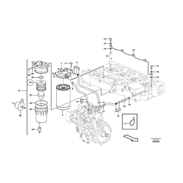 FILTER-VOE15066534 is a fuel oil filter designed and manufactured by Volvo Construction Equipment. This filter is a crucial component in maintaining the cleanliness and efficiency of your machine's fuel system. It is designed to remove impurities and contaminants from the fuel before it reaches the engine, ensuring optimal engine performance and longevity. This filter is applicable to several machine models including Compact Excavators EC55C, ECR88, MC110B, and Classic Machines MC60B, among others. For further details and specifications, contact our support team.